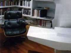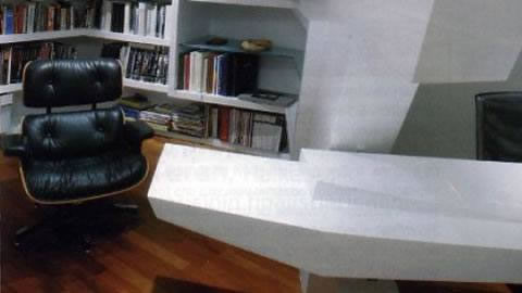Ofis mekansal akıcılık içeren bir dille, kıvrımlı mobilya düzenlemesi kullanılarak tasarlandı. Kıvrımlar, mekanlar arasındaki bölücülüğü ve aynı zamanda bağlantıyı sağlayarak, akışkanlığın yumuşaklığını hissettiriyor. Ziyaretçiler biraz karmaşa ve gariplikle karışlaıyor ve sadece keşfedilmek için kurgulanmış bilinmeyen bir alana giriyorlar. Dinamik form, 'akışkan mimarlık'la mevcut mekansal kurguyu tam olarak gözardı etmese de, zayıflatarak dikdörtgenliği parçalıyor. Kitaplık duvar haline geliyor ve zemin üzerinde çözülüp, ayrışarak masaya dönüşüyor.